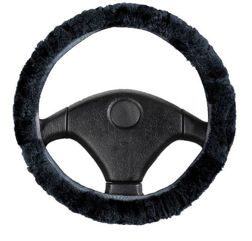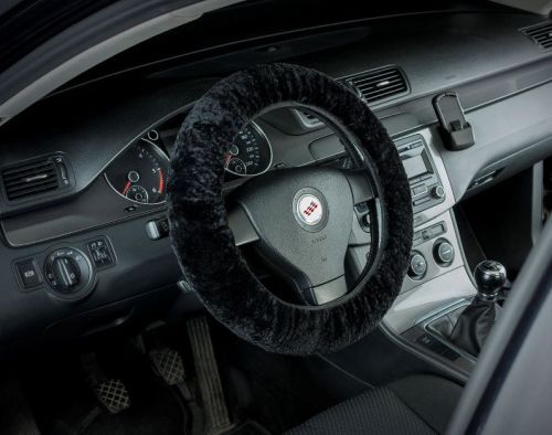 Couvre volant voiture en peau d'agneau noir 37-39cm