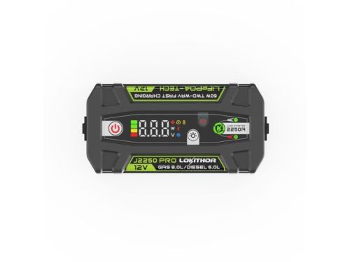 "Le démarreur de voiture 12 V J2250 Pro LifeP04 est fabriqué avec une énergie 100% sûre. Il délivre un courant de démarrage élevé de 2250 ampères, adapté aux moteurs à essence jusqu’à 8 litres et aux moteurs diesel jusqu’à 6 litres. La fonction de charge rapide bidirectionnelle de 60 W permet au démarreur d’être prêt en seulement 3 minutes de charge et de charger totalement votre véhicule en 50 minutes. Sa banque d'alimentation interne fournit 60 W de puissance de sortie pour alimenter facilement vos appareils USB-C comme les téléphones, les tablettes et les ordinateurs portables. La torche LED a une puissance lumineuse continue impressionnante de pas moins de 50 heures. Cette torche polyvalente est équipée de trois modes dynamiques : torche, lumière stroboscopique et lumière SOS. Le Lokithor J2250 a une durée de vie cinq fois supérieure à celle d’une batterie au plomb et deux fois supérieure à celle d’un démarreur au lithium. Le démarreur J2250 LiFePO4 dispose de 10 types de protections intégrées comme une protection contre les étincelles, contre les défauts et contre l’inversion de polarité, pour éliminer les problèmes de défaillance tels que les courts-circuits ou les étincelles. Le courant d’autodécharge incroyablement faible de 0,21 mAh du démarreur de secours J2250 lifepo4 garantit une autonomie en veille de plus de 24 mois et garantit que votre appareil est toujours prêt à l’emploi. • Puissant courant de démarrage de 2250 ampères • Charge complète du véhicule en 50 minutes ou recharge en seulement 3 minutes • Bloc d’alimentation interne avec port USB-C offrant une puissance de sortie de 60 W"