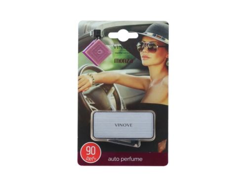 "Le Vinove Air Freshener Regular Monza est un parfum électrisant de femmes rapides, créatives et déterminées. Un parfum de douces promesses et de sex-appeal mature. Monza, c'est la combinaison des contradictions, de la fraîcheur de l'ananas et de la pêche dans un bouquet coloré de roses rouge amarante et de la douceur du chocolat et du caramel. Notes de tête : néroli, bergamote, ananas, pêche. Notes de cœur : violettes, jasmin, rose. Notes de fond : chocolat, caramel, patchouli. • Condenseur de parfum de conception innovante, libère des parfums subtils jusqu'à 90 jours • Le paquet contient un testeur d'odeur de polymère original • Façade du produit en aluminium brossé moderne"