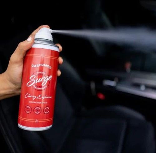 "Découvrez Carfume Surge, le désodorisant pour voiture le plus puissant et le plus durable du marché. En une seule pulvérisation, remplissez toute votre voiture de votre après-rasage ou parfum préféré ! - Délicieux parfum de cerise - Bombe haute pression de 400 ml - Élimine les odeurs et rafraîchit l'air - Parfum longue durée - Une seule pulvérisation, ça sent bon pendant des heures."