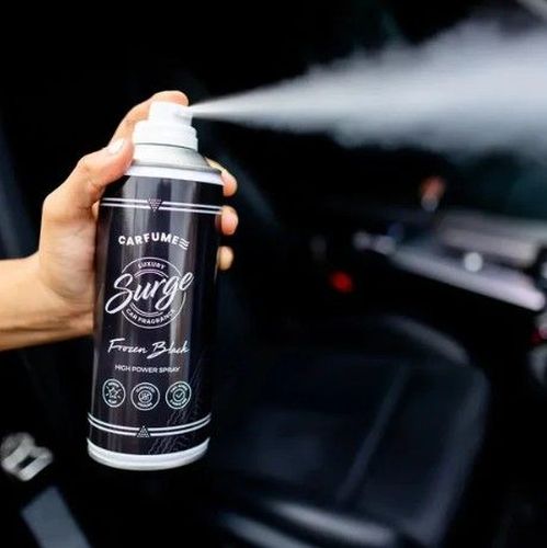 "Découvrez Carfume Surge, le désodorisant pour voiture le plus puissant et le plus durable du marché. En une seule pulvérisation, remplissez toute votre voiture de votre après-rasage ou parfum préféré ! - Délicieux parfum Noir Glacé - Bombe haute pression de 400 ml - Élimine les odeurs et rafraîchit l'air - Parfum longue durée - Une seule pulvérisation, ça sent bon pendant des heures."
