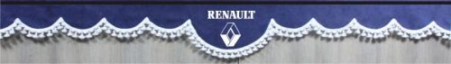 DL Rideau pare-brise 16 Ren logo +texte Bleu + pompons    -   DELRUELINE