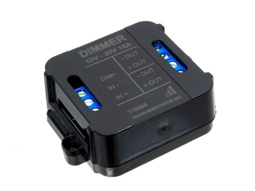 "Contrôleur qui convertit le signal 5V du variateur intégré de Scania en 12V ou 24V, selon l'alimentation connectée. Cela signifie que vous pouvez connecter des LED et des bandes LED ordinaires, et toujours les atténuer avec le variateur intégré 5V ou 24V, sans le surcharger et créer un défaut. Le contrôleur est simple à connecter avec les bornes à vis. Version mise à jour La dernière version a un courant maximal augmenté de 5A à 15A, et peut désormais être utilisée pour les signaux de variateur 5V et 24V. Il y a maintenant aussi 2 bornes de sortie, pour une connexion plus facile. Connexion : INPUT DIM5V - Le plus du variateur Scania se connecte ici (5 V) IN- Se connecte au moins du camion (12 V/24 V) IN+ Se connecte à la masse du camion OUTPUT OUT+ Sortie avec le plus pour les feux (12 V/24 V) OUT- Sortie avec le moins pour les feux Il est important d'utiliser à la fois GND et 24 V sur le contrôleur lorsque les feux sont connectés. Le contrôleur doit être aussi proche que possible du variateur."