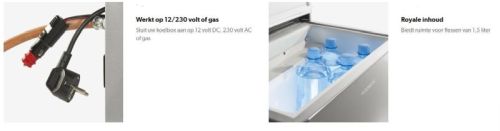 "Vous avez trouvé un endroit de rêve, mais vous ne pouvez pas vous y rendre avec votre véhicule et il n'y a pas de courant électrique disponible... Ne vous inquiétez pas, les glacières à absorption CombiCool ACX3 de Dometic vous offrent une liberté maximale dans le choix de votre emplacement de camping. Dans le véhicule ils fonctionnent sur 12 volts DC, à la maison ou au camping sur 230 volts AC. En pleine nature, passez simplement au gaz. Tous les modèles ACX3 refroidissent jusqu'à 30 °C maximum en dessous de la température ambiante. Une autre caractéristique commune de la famille ACX3 est le boîtier robuste avec un design attrayant et un couvercle distinctif. • Fonctionne sur cartouche de gaz, 12 volts DC et 230 volts AC, pour que l'approvisionnement en énergie soit garanti et que vous puissiez aller où vous voulez ! • Silencieux signifie également vraiment silencieux • Conception attrayante • Un bac à glaçons est inclus dans la livraison • Refroidit jusqu'à 30 °C maximum en dessous de la température ambiante. • Boîtier robuste pouvant accueillir 67 canettes ou 11 bouteilles de 1,5 litre debout • Contrôle de la flamme à trois niveaux en mode gaz, contrôle du thermostat sur 230 volts • 12 V/230 V/gaz • 30 mbars DIN732 • Dimensions de profondeur du produit, [mm] 485 • Dimensions de la hauteur du produit, [mm] 442 • Dimensions de la largeur du produit, [mm] 500 • Poids net, [kg] 16 • Volume total (CEI 62552-3), [l] 41"