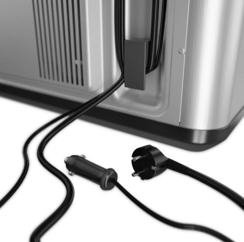 "• Glacière hybride portable, 43 litres, 12 volts DC/230 volts AC • Refroidissement par compresseur puissant jusqu'à -15 °C maximum sur 230 volts CA ou refroidissement thermoélectrique fiable jusqu'à 20 °C maximum en dessous de la température ambiante via la batterie 12 volts CC de votre camping-car, camping-car ou voiture. Cette glacière hybride polyvalente s'adapte à vos besoins. • Le compagnon idéal comme réfrigérateur de rechange pratique au camping, à la maison ou dans la maison de vacances ! • Assez haut pour stocker des bouteilles de 1,5 litre ou 2 litres à la verticale • Refroidissement par compresseur puissant sur 230 volts AC et refroidissement thermoélectrique sur 12 volts • La température peut être réglée entre +10°C et max. -15°C (mode compresseur). • Poignées rabattables robustes et ergonomiques sur les côtés • Boîtier robuste avec revêtement en acier • L56,5 cm x H45,2 cm x P50,5 cm "