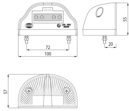 "L10,2cm x L5,5cm x H5,7cm / Illumination plaque LED-blanc + 2x LED-rouge feu de position / prix par pièce"
