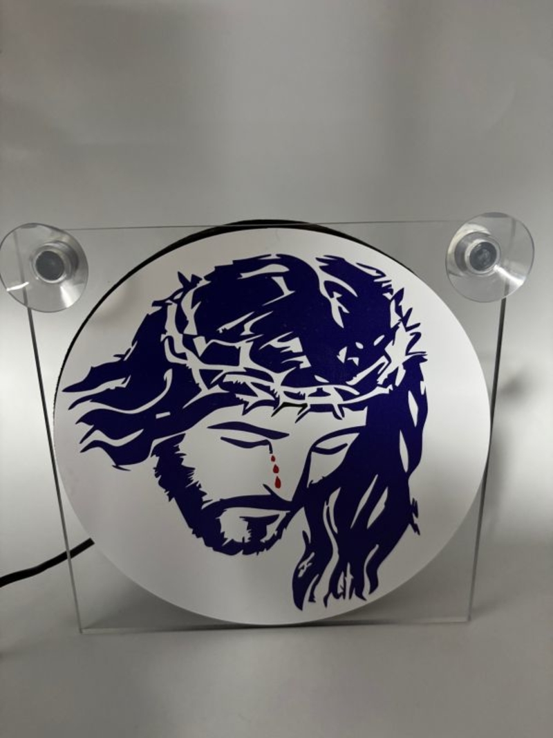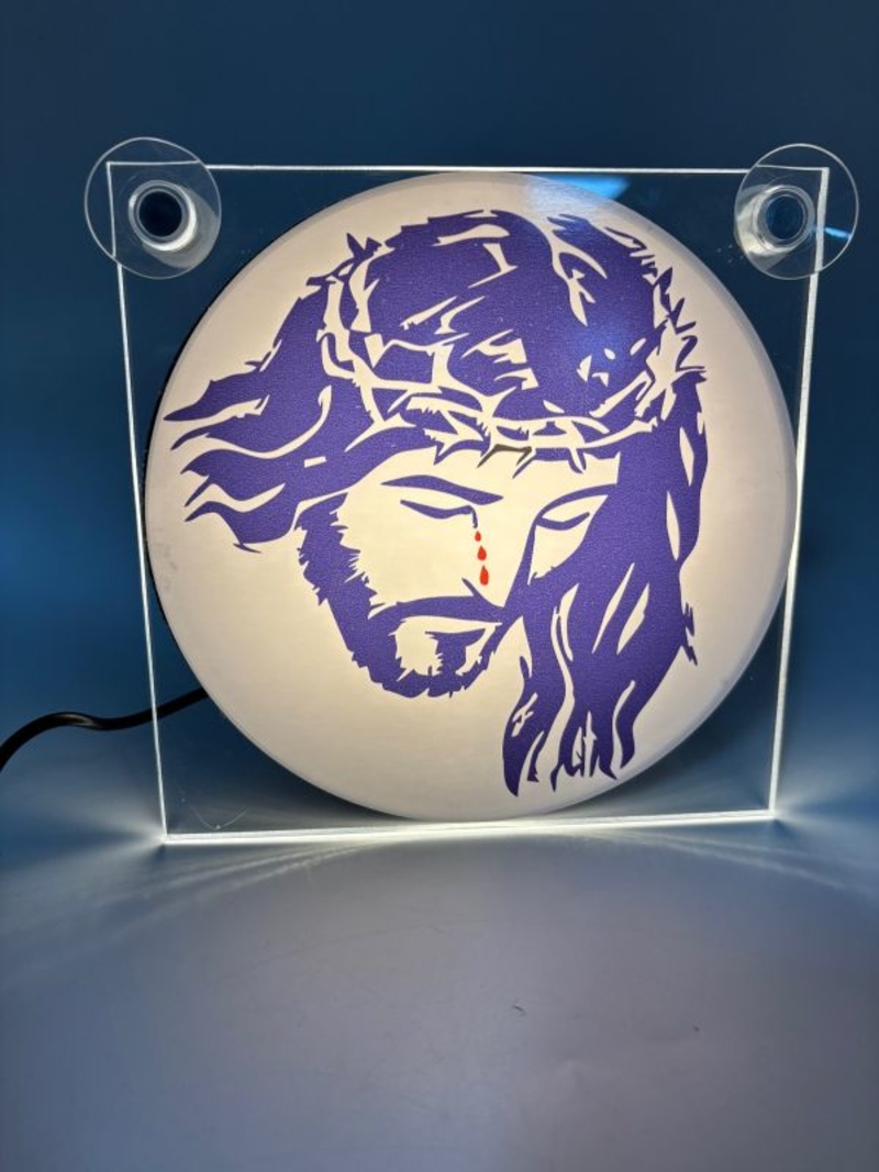 Ecran lumineux LED "Jesus pleur" bleu 17x17cm USB