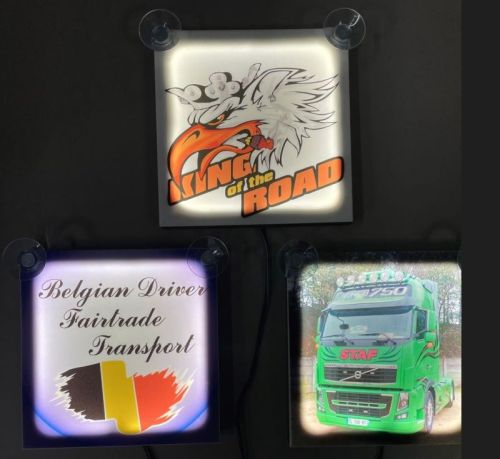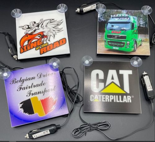 Eclairage LED 24V blanc / Eclairage fenêtre avec 2 ventouses 14cmx14cmxD1.5cm / Avec prise allume-cigare + fil 120cm • Disponible avec l'impression souhaitée • Envoyez-nous votre dessin ou photo