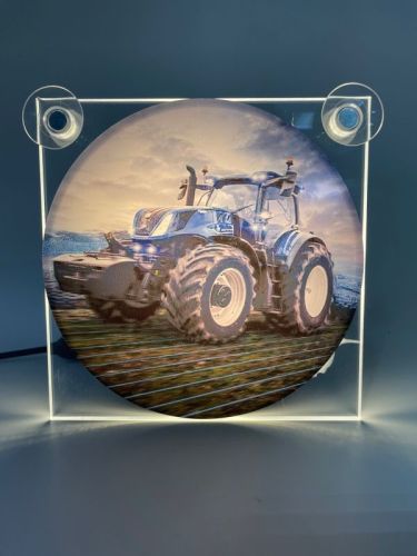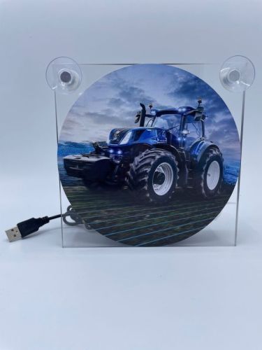 Ecran lumineux LED blanc Tracteur bleu 17cmx17cm USB 5V