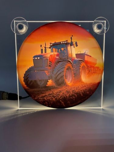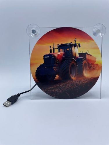 Ecran lumineux LED blanc Tracteur rouge 17cmx17cm USB