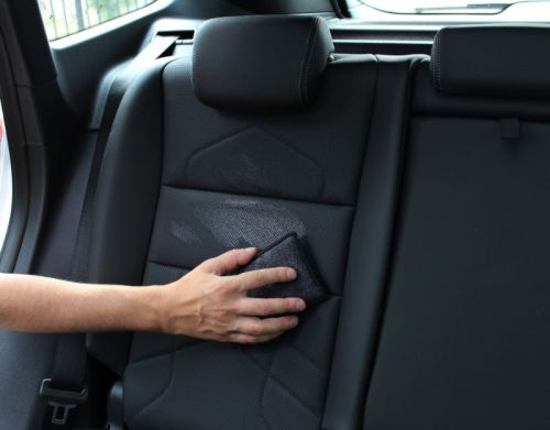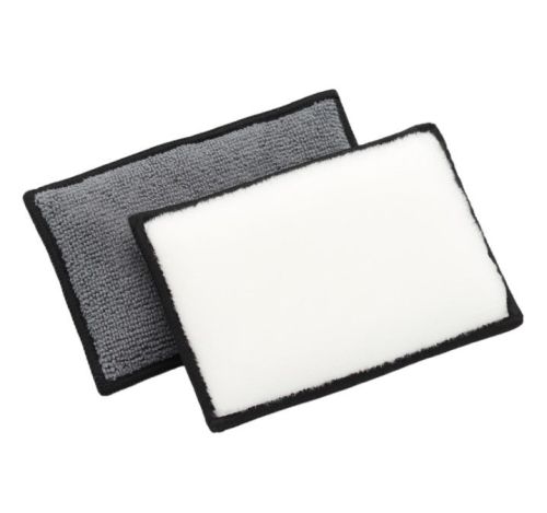 "La magie de notre tout nouveau tampon éponge, développé pour le cuire, les textiles, vinyles et autres matières synthétiques. Il combine une face en nylon blanc pour nettoyer en profondeur et une face en microfibre grise pour un essuyage en douceur. Ils suppriment sans effort les traces de doigts, poussières et saletés des portes, sièges, tableaux de bord, moquettes... Conservez votre voiture immaculée avec facilité!"