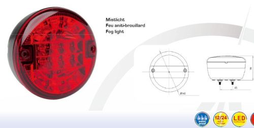Feu antibrouillard LED 12V/24V rouge Ø14cm