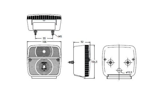 Feu arrière 10,8x10,7cm position/stop/clignotant/plaque