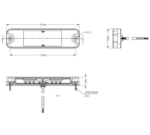 Feu 3-fonction à LED (feu de position/feu stop/clignotant) dimensions : 191x50x22 mm E-approuve (seulement par montage horizontal)