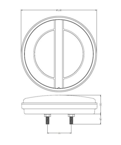 Model DROITE ! Voltage: 12-24V DC Functions: 3 (Tail/Brake/Dynamic Indicator) IP-Class: IP68 Cable length: 25cm Diameter: 140mm Depth: 35mm CC: 44mm E-approved: ECE R7 R6 R10