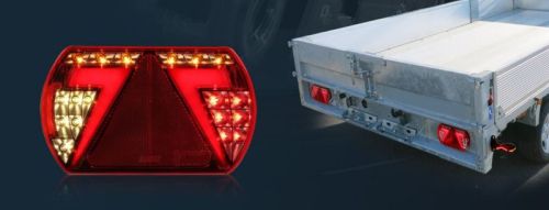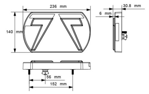 "• Led - feu arrière - 12V - glo trac - 6 fonctions - 5 broches - droite • Fonctions : Feu de circulation / Feu arrière / Clignotant / Feu antibrouillard / Feu de plaque d'immatriculation / Réflecteur • Dimensions : 236 mm x 140 mm x 30,8 mm"