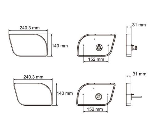 GAUCHE / L240mmxH140mmxP31mm / 12V-24V / feu stop-arrière-clignotant-antibrouillard-recul