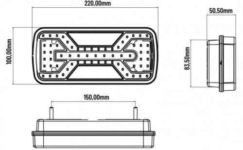 • 10-30 V • 69 LED • Position/stop/clignotant/feu de recul/réflecteur • Montage horizontal et vertical possible • IP67 • Lentille en PMMA • Corps en ABS/PC • Fixation par vis • Homologué CE R10/R148/R150 • 22 cm x 10 cm x 5 cm • Câble 24cm