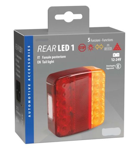 Feu arrière LED carré (10,5x9,7cm)12V/24V 5 fonctions