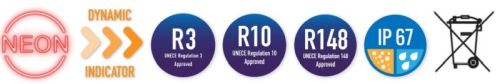 "Côté DROITE 12V / 24V 41 LED PC lens ABS housing Tail / stop / dynamic indicator / Numberplate lighting / reflector 2,7W / 1W / 3W / 0,5W Wire 250mm ECE R3 / ECE R10 / ECE R148"