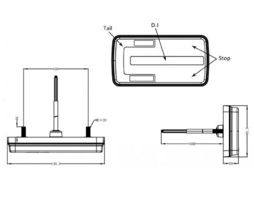 12V+24V / 36LED / L15cmxH8cmxD / 3-fonctions / Montage gauche ou droite possible