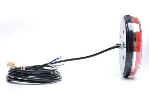 "Voltage: 12-24V DC Functions: 3 (Tail/Brake/Dynamic Indicator) IP-Class: IP68 Cable length: 2000mm Diameter: 142mm Depth: 38mm CC: 45mm E-approved: 7, 6 "