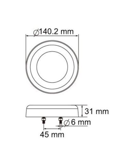 "Feu de position + feu stop + clignotant / Duovoltage 12V+24V / dia 140mm x profondeur 31mm / Câble 1,5m / IP67 / Montage avec circle chromé (ref. 03381046) possible ! "