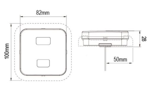 •10/30Volts •28 LED Diodes •Rated IP67 •100*100*28mm •Stop/Tail/Indicator •PMMA Lens •ABS Body •Ultrasonic Welding •Bracket Mount •Operating Temperature -40° to 65° •ECE Approved Reg 6 / 7 / 10