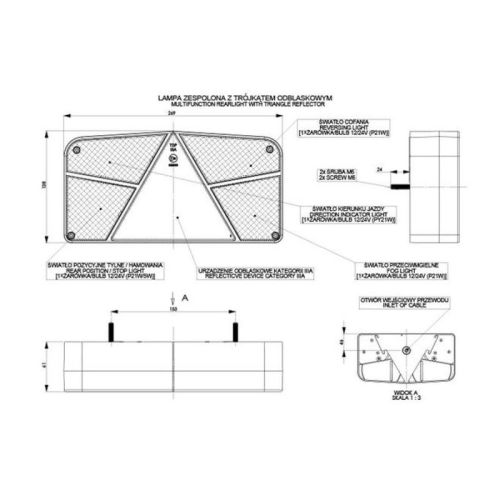 Feu arrière rectangulaire DROITE 5-fonctions (26,5cmxH14cm)