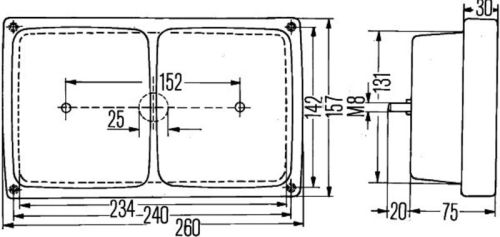 Feu arrière/frein/clignotant Hellacaouchouc (260x157mm)