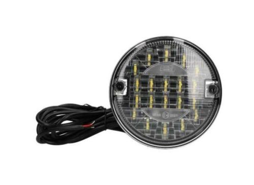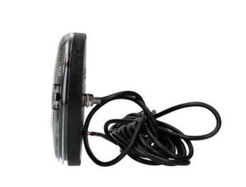 "Fue de Recul LED, 12/24V plat. Diamètre: 140mm Ø Hauteur: 31mm entraxe: 45mm boulons: M6. Connexion: câble 5.0M avec extrémité ouverte; couleur du fil conformément aux instructions d'installation fournies. IP67. Livré avec un ensemble chromé avec anneau en plastique et joint en caoutchouc. "