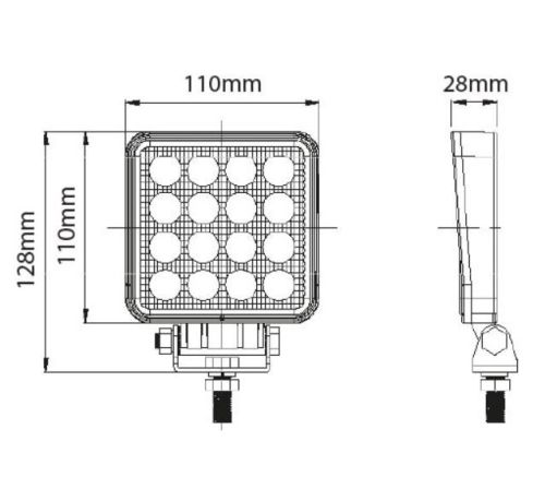 "•12-24 •10,5cmx10,5cm •32 Watt •16 SMD Leds •1920 Lumens •Rated IP66 •Polycarbonate Lens •ABS/Graphene Housing •Single Bolt Mounting •Stainless Steel Bracket •110*28*128mm •ECE Approved Reg 10 •EMC Approved •Operating Temperature -40°C to +50°C"