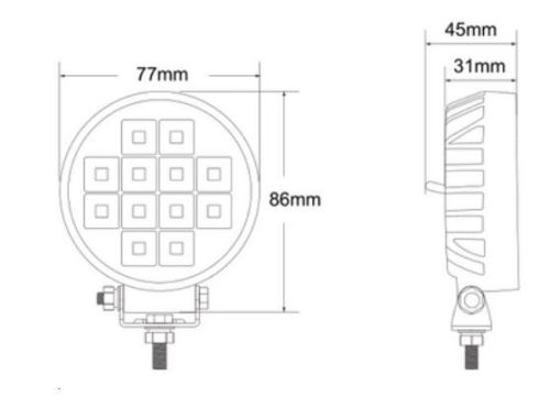Feu de travail rond 12LED 12/24V 1800Lumen + interrupteur