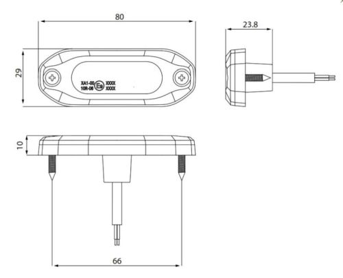 "• 3 LED ORANGE • Tension de fonctionnement : 10-30 V CC • Consommation : De 6,2W à 9W (selon couleur et motif) • Fréquence de clignotement : 10 modèles de clignotement • Type de protection : IP69K • Synchrone et asynchrone • 8 cm x 2,9 cm x 1 cm"