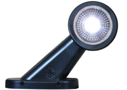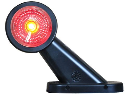 "Montage gauche ou droite possible / Feu de gabarit LED. Homologué 9-36V. Rouge/blanc. Modèle court, 45º. Entièrement en caoutchouc. Unité de cabochon avec 2 LED. Avec câble de 0,3 m. Agréation E et Satisfait à la norme CEM EMC. IP68.Diamètre cabochon: 47 mm Ø. Longueur: 108 mm. Entraxe 4 trous 64x29mm."