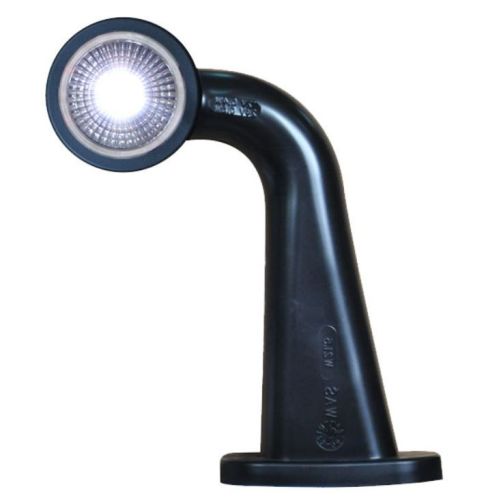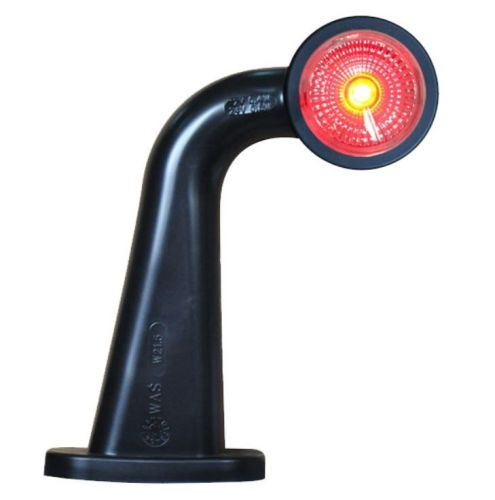 "Montage gauche ou droite possible / Feu de gabarit LED. Homologué 9-36V. Rouge/blanc. Modèle long, 90º. Entièrement en caoutchouc. Unité de cabochon avec 2 LED. Avec câble de 0,3 m. Agréation E et Satisfait à la norme CEM EMC. IP68.Diamètre cabochon: 47 mm Ø. Longueur: 190 mm. Entraxe 4 trous 64x29mm."