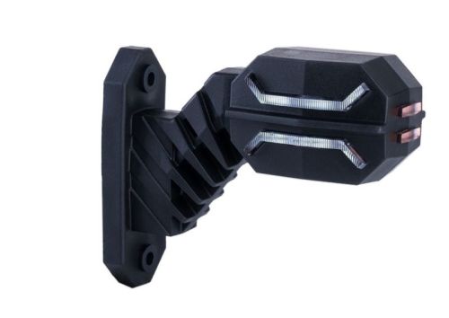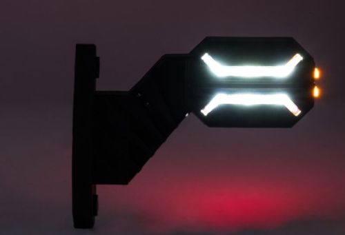 "Il s'agit d'un feu de position à trois fonctions sur un long bras diagonal, conçu pour être monté sur le côté gauche du véhicule. La lampe fonctionne sur une tension universelle de 12/24 V et se caractérise par une faible consommation d'énergie. Seules des diodes de marque sont utilisées pour la production, qui distinguent définitivement la qualité de l'éclairage et soulignent de manière attrayante les contours d'un véhicule en mouvement. Il a un design intéressant et est destiné à être utilisé dans les camions et les machines agricoles, les remorques et les semi-remorques. Fonctions de la lampe : – feu de position arrière (couleur de lumière rouge) – 6 diodes – feu de position avant (couleur de la lumière blanche) – 6 diodes – feu de position latéral (couleur de la lumière orange) – 4 diodes Le produit est entièrement hermétique (indice de protection IP 68) et la plage de températures de fonctionnement est comprise entre -30 degrés C et +50 degrés C."