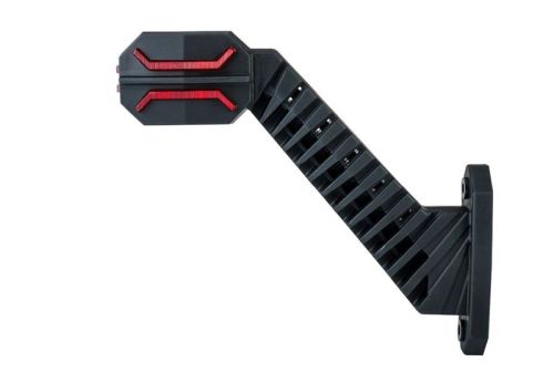 "Il s'agit d'un feu de position à trois fonctions sur un long bras diagonal, conçu pour être monté sur le côté gauche du véhicule. La lampe fonctionne sur une tension universelle de 12/24 V et se caractérise par une faible consommation d'énergie. Seules des diodes de marque sont utilisées pour la production, qui distinguent définitivement la qualité de l'éclairage et soulignent de manière attrayante les contours d'un véhicule en mouvement. Il a un design intéressant et est destiné à être utilisé dans les camions et les machines agricoles, les remorques et les semi-remorques. Fonctions de la lampe : – feu de position arrière (couleur de lumière rouge) – 6 diodes – feu de position avant (couleur de la lumière blanche) – 6 diodes – feu de position latéral (couleur de la lumière orange) – 4 diodes Le produit est entièrement hermétique (indice de protection IP 68) et la plage de températures de fonctionnement est comprise entre -30 degrés C et +50 degrés C."