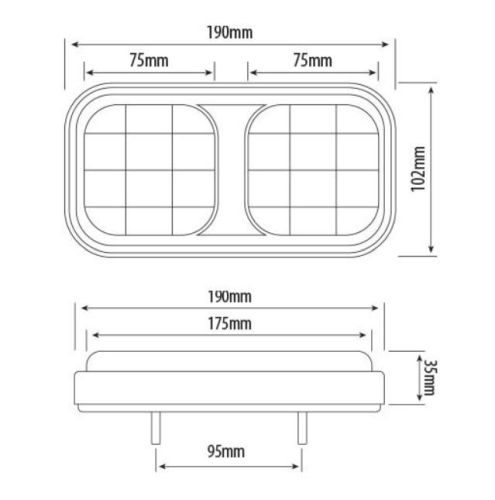 •12-24 Volts •Rated IP67 •Polycarbonate Lens •ABS Housing •Bolt Mounting •190*102*35mm •Reflector | Stop | Tail | Indicator •ECE Approved Reg 3 | 6 | 7 •Working Temperature -40ºC - +65ºC