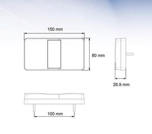 "15xH8cm / profondeur +-2,5cm / ECE homologué Connection: blanc: masse brun: + feu de position jaune: clignotant rouge: + stop/frein"