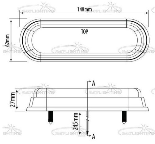 12-24 Volts 12 Watts 12 Amber LEDs 18 Flash Patterns Rated To IP67 Polycarbonate Lens ABS Base Material Low Current Draw Bolt On Efficient Heat Dissipation 136*56*25mm ECE Approved | Reg 10 Operating Temperature: -40°C to +65°C