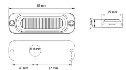 Open kabeleinde • Aantal flitspatronen 16 • Aantal LEDs 3 • Afmetingen 86 x 27 x 10.6 mm • Bedrijfstemperatuur -30°C / +65°C • Bevestiging