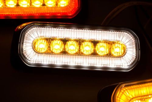"Flash orange + feu de position BLANC / 14 motif de flash / ECE + EMC R10 / L132xH50xP18,8mm"