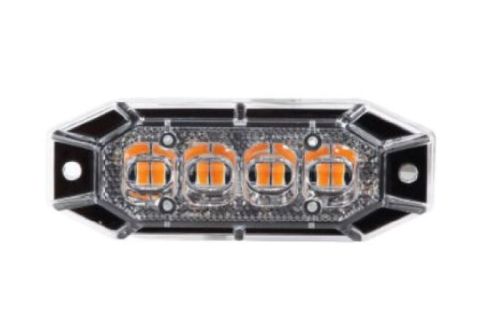 "• 12/24V • 8W (8 x 1W) • 8 Amber SMD LEDs • Dimensions: 97.7*35.7*15.5mm • Nominal Current @12V 0.70A • Nominal Current @24V 0.35A • Rated IP67 / IP69K • ECE Reg 10/65 Class 2 • CISPR25 Class 3 • 11 Flash Patterns • Polycarbonate Lens (Clear) • Aluminium Base • Screw / Surface Mount • 98mm Bolt Fix Distance (Ø3mm hole) • Height 3,5cm • 210mm Cable Length • Seal Ring & Glue Seal • Operating Temperature: -40ºC ~+60ºC"