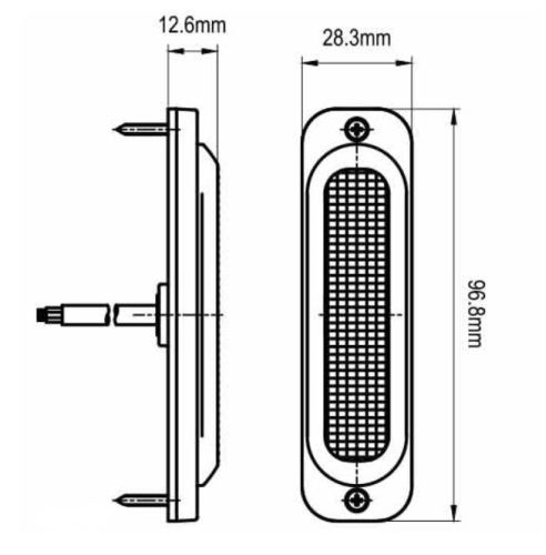 •10-30 Volts •2W (4 x 0.5W) •4 Amber LEDs •Rated IP67 •140 Lumens •19 Flash Patterns •Polycarbonate Lens •Aluminium Housing •Surface Mount •96.8*28.3*12.6mm •ECE Approved Reg 10 •Temp: -40C to +60C