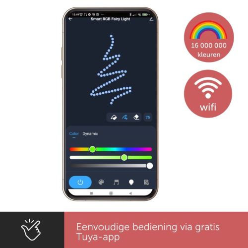"Créez une ambiance chaleureuse dans n'importe quelle pièce avec cette guirlande lumineuse LED connectée multicolore : choisissez parmi un spectre de 16 millions de couleurs et contrôlez jusqu'à 40 animations dynamiques d'une simple pression sur votre téléphone via l'application Tuya, idéale en toute occasion. Synchronisez les lumières au rythme de votre musique préférée pour un éclairage de fête aussi vibrant que votre playlist. Durable et étanche, cette guirlande lumineuse est idéale pour une utilisation en intérieur comme en extérieur. Facile à installer, elle offre un éclairage écoénergétique qui brille toute la nuit. + 16 millions de couleurs : Ces 16 millions de couleurs offrent des possibilités infinies de personnalisation de l'ambiance. + Contrôle via l'application : Contrôle facile avec l'application Tuya, vous permettant de configurer jusqu'à 40 animations. + Synchronisation musicale : Des motifs lumineux qui bougent au rythme de votre musique préférée pour une expérience dynamique. + Étanchéité : Idéale pour une utilisation en intérieur comme en extérieur, grâce à sa construction durable et étanche. + Économe en énergie : Lumière longue durée à faible coût énergétique, idéale pour une utilisation nocturne. + RVB avec connexion USB • Cordon d'alimentation : 200 cm • Longueur de la guirlande LED : 750 cm"