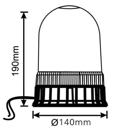 montage fixe 3 points / Hauteur 190mm / Diamètre 140mm / ECE R10+R65 / 1 fonctions (Flash) Light source: 24pcs of 3W leds Fitting Screw base Voltage 12/24V (DC) Operating Temperature -30 / +50 °C Dome Material PC Base ABS Homologation ECE R10+R65 Electromagnetic Compatibility Conforms EMC Function: Single flash IP Rate 65