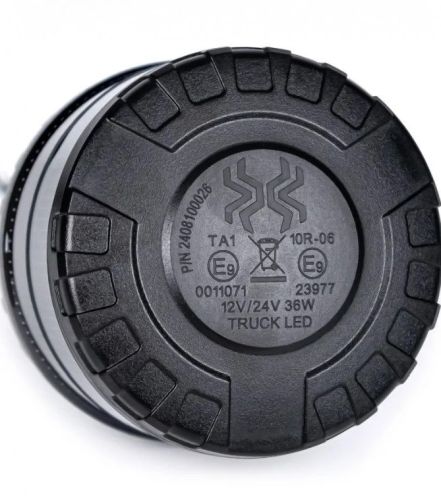 • 12 V + 24 V • Montage tube • 16 LED • Objectif PC • Boîtier ABS • 2 flashs d'avertissement • 36 W • IP69K • R10/R65