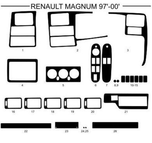 Habillage de tableau Renault MagnumAE '97- bois POL 26-pcs