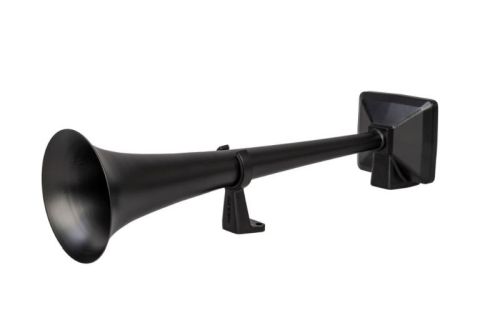 "Le HADLEY est un claxon simple de 49 cm. Il a un bec rond à l'avant (diamètre 12,5 cm) et une partie arrière carrée. Une vraie version "Heavy Duty" qui peut prendre des coups ! Le Hadley est connu pour son son "chaud" et ses chromes de haute qualité. Il est généralement placé sur un côté du véhicule. Ce modèle peut également être monté en version double, chacun d'un côté, si deux sont commandés. Cet avertisseur pneumatique est fourni en standard SANS fonctionnement mais avec un pied d'appui à l'avant. Kit de montage et de fonctionnement nécessaire exemple Réf. : 03402171 or 03402170 (pour 1 ou 2 claxons) vous pouvez aussi commandé toutes les pièces apart (= notre ref. 03381416 of 03389098) • Ce klaxon pneumatique est équipé d'un raccord rapide pour le raccordement direct de la conduite d'air Ø6mm • Par pièce"